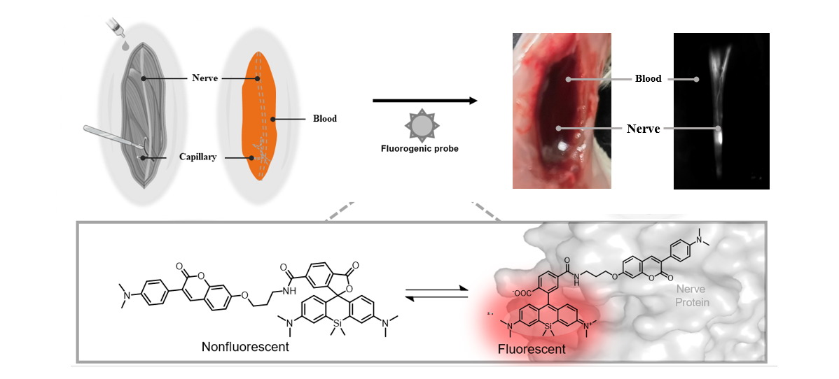医源性神经损伤仍是现代外科手术中一类重要且呈增长趋势的并发症,全球每年开展的手术超过3亿例,多达8%的患者经历医源性神经损伤。外周神经在术中能否被快速、清晰地识别,是降低医源性神经损伤并改善手术结局的关键;然而手术中常见的出血、渗液与组织遮挡,使得细小神经分支束的精准辨识依然困难。当前术中神经保护主要依赖术者经验并辅以术中神经电生理监测等手段,但这些方法多为间接反馈,难以提供可用于实时高空间分辨“可视化”指引。针对这一瓶颈,9色视频 王璐团队开发了近红外荧光“关—开”型喷雾探针 N4,可在约10秒内实现免洗神经显像,并通过髓鞘碱性蛋白(MBP)触发的螺环开环机制显著提升术野对比度与抗干扰能力。相关研究以“A Near-Infrared Fluorogenic Spray Probe for Rapid and Wash-free Intraoperative Nerve Imaging”为题发表于 Journal of Medicinal Chemistry。